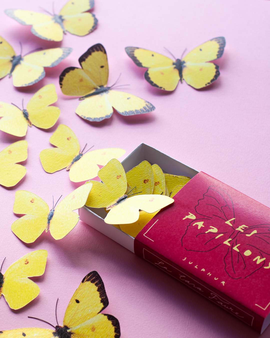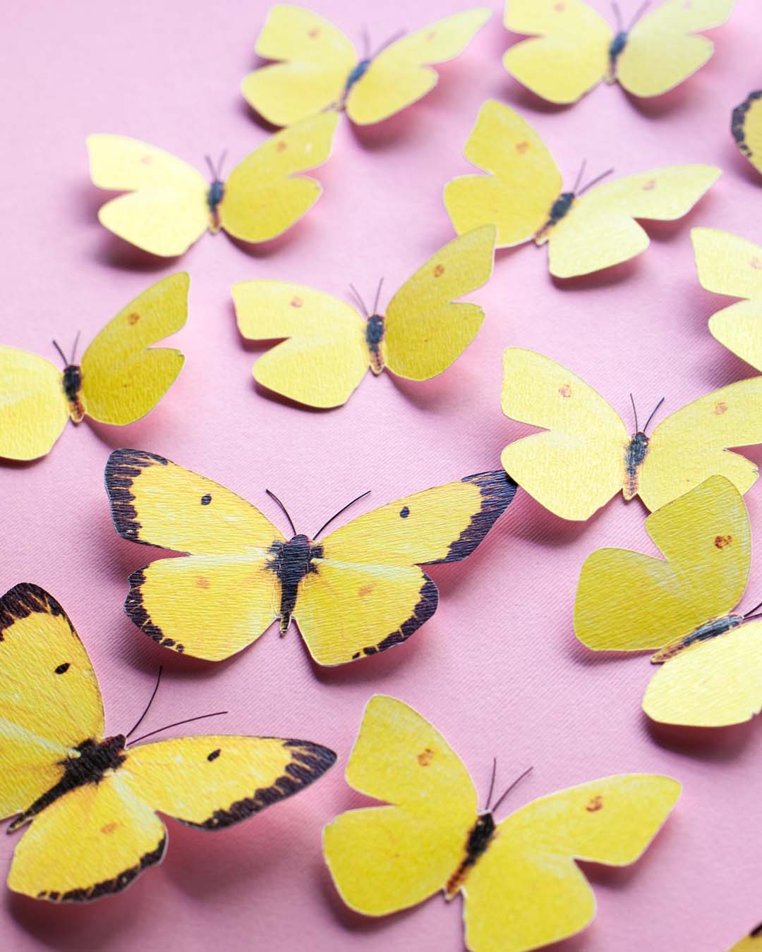 - Set de 24 mariposas Azufre amarillas, impresas sólo en el frente