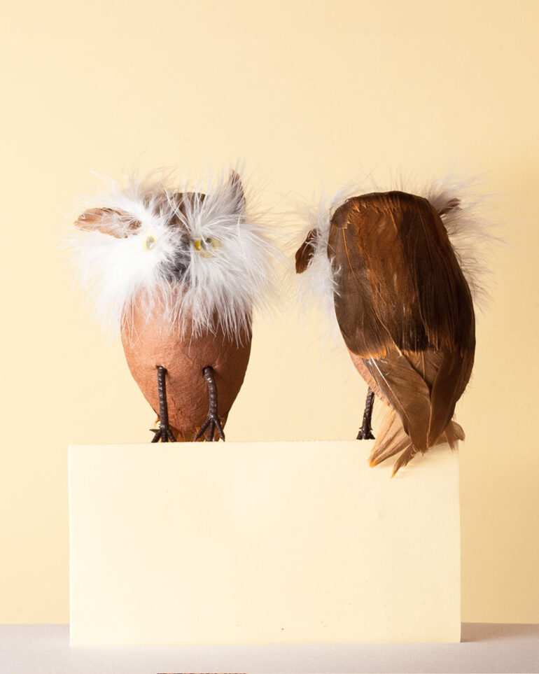 Poliestireno forrado y plumas reales