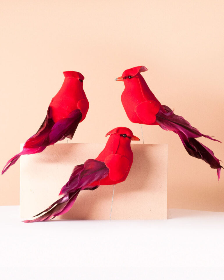 Estos cardenales son ideales en donde se quiera dar un acento rojo. Por ese motivo, son especialmente recomendables para decoración navideña. Su alambre permite sostenerlos en telgopor, arreglos florales, ramas secas o varas de bambú, árboles de navidad, y más.